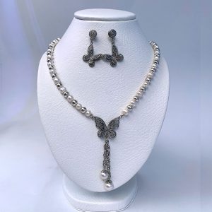 Juego de collar y aretes de perla y Mariposa